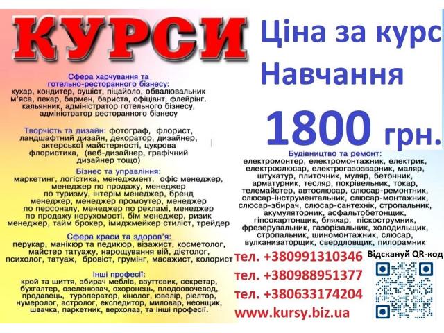 Курси ціна 1800 грн. акція друга професія безкоштовна