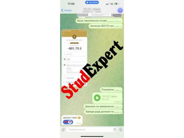 Важливо! StudExpert Company не продає жодних документів про освіту! Надаємо послуги виключно з пошуку та структурування інформації в якості прикладу.