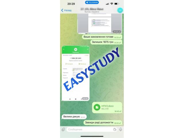 Звертаємо Вашу увагу, що EasyStudy Company не продає жодних наукових праць або документів про освіту! Надаємо послуги виключно з пошуку, обробки та структурування інформації, згідно вимог замовника. Зібрані матеріали не являються науковою роботою, але можуть бути використані в якості прикладу для самостійного написання.