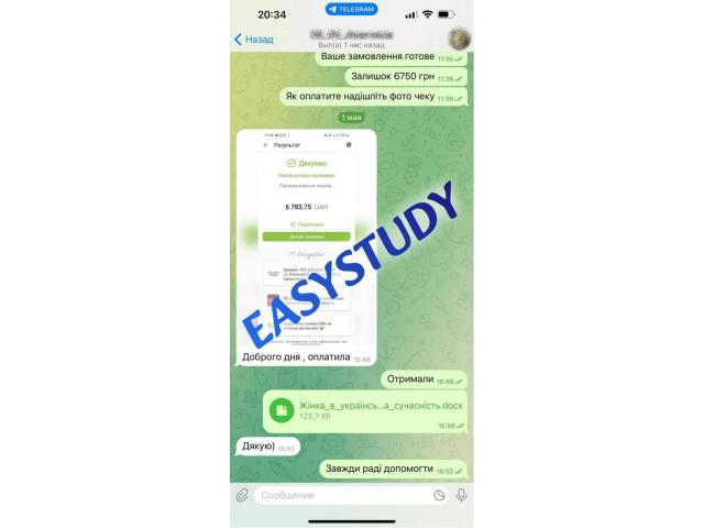 Звертаємо Вашу увагу, що EasyStudy Company не продає жодних наукових праць або документів про освіту! Надаємо послуги виключно з пошуку, обробки та структурування інформації, згідно вимог замовника. Зібрані матеріали не являються науковою роботою, але можуть бути використані в якості прикладу для самостійного написання.
